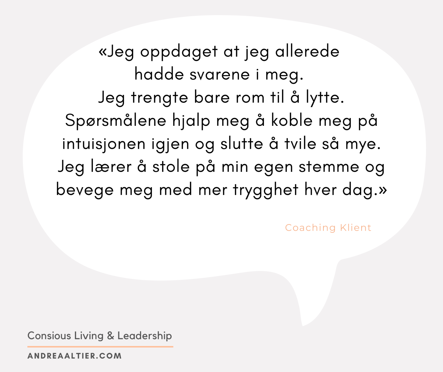Innsikt og refleksjoner fra mennesker som har opplevd transformasjon gjennom coaching og mentoring ved å utforske bevissthet, intuisjon og bevisst lederskap i praksis.