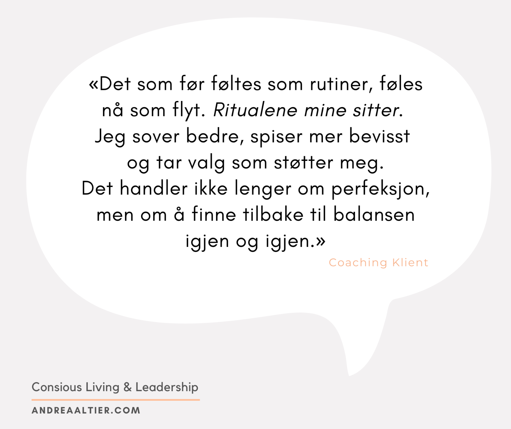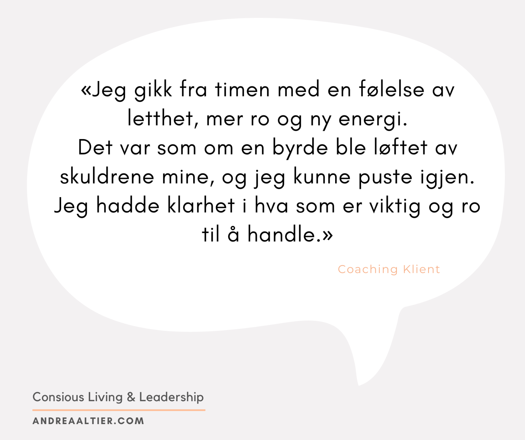 Hver coaching- og mentorsamtale er unik, men essensen er den samme: mer klarhet, flyt og kontakt med seg selv.